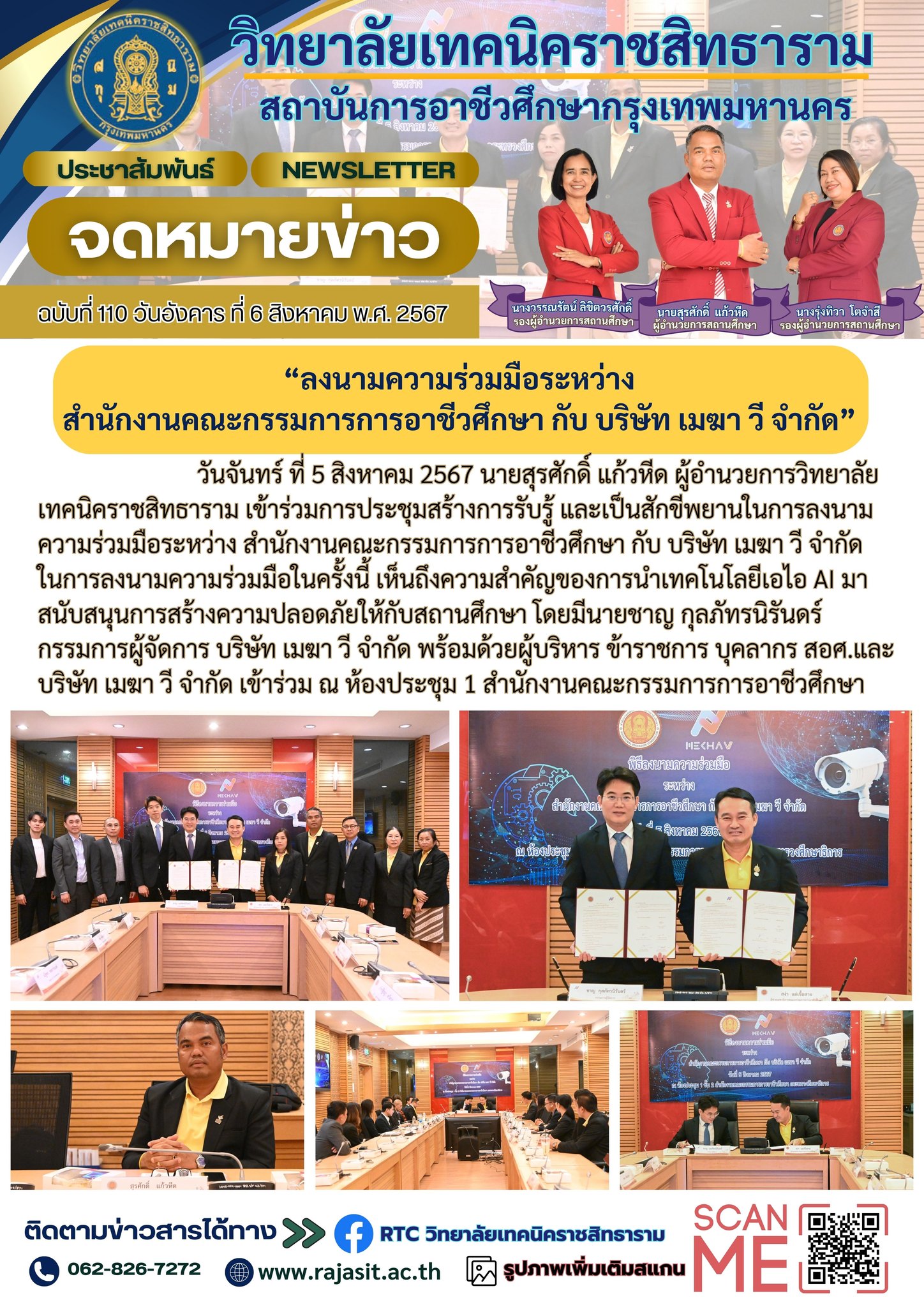 เรื่อง : ลงนามความร่วมมือระหว่างสำนักงานคณะกรรมการการอาชีวศึกษา กับ บริษัท เมฆา วี จำกัด
